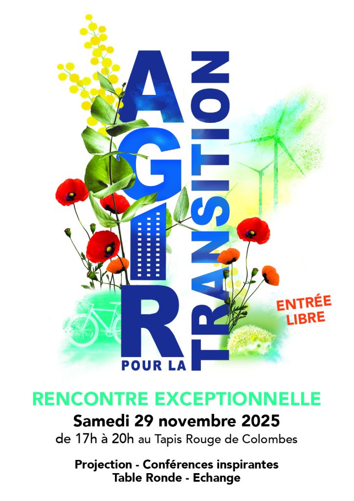 L’association Colombes Transition mobilise des citoyennes et citoyens déterminés à agir face aux défis du dérèglement climatique, de l’épuisement des ressources naturelles et de la dégradation de la biodiversité. Chaque action, même la plus modeste, peut avoir un impact significatif. C’est pourquoi nous prônons des initiatives pacifiques, pertinentes et adaptées à chaque contexte, pour avancer ensemble vers une transition essentielle.